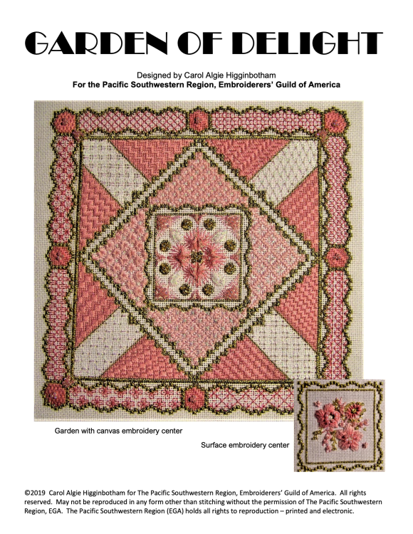 This is a lovely congress cloth piece by Carol Algie Higginbotham that is fun to stitch. A real bargain at only $20!