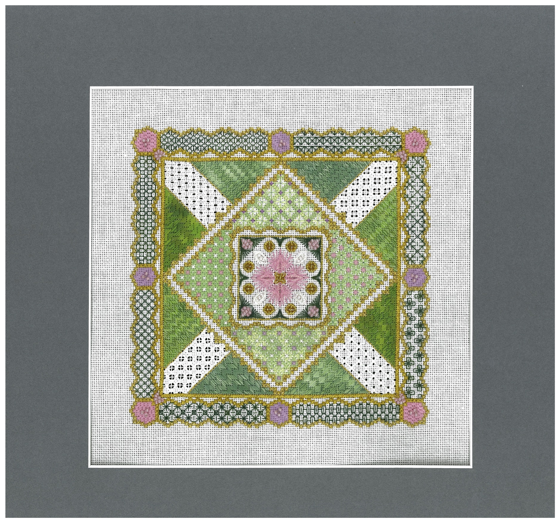 Designed by Margaret Bendig, Victorianna is flavored with patterns and techniques from Victorian embroidery and canvas work, along with other canvas patterns and stitches.